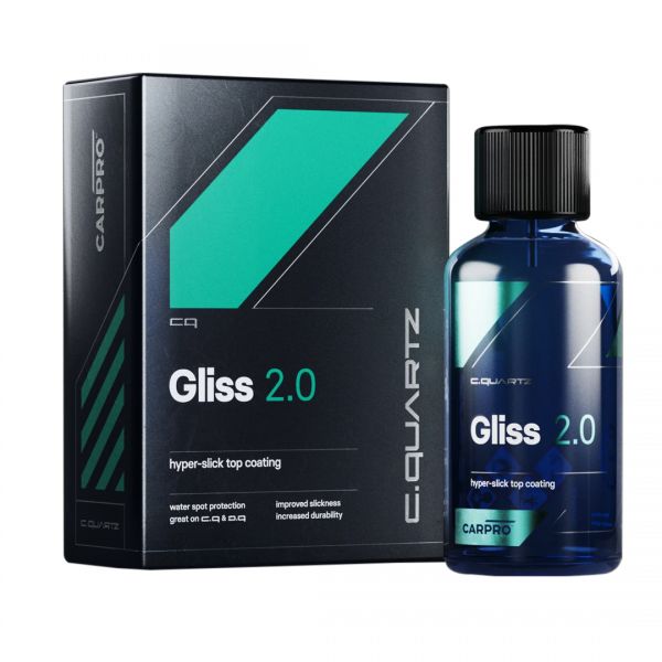 Con Gliss, CARPRO puso al descubierto los nuevos avances en nanotecnología y diseñó un revestimiento nano cerámico totalmente nuevo hiper-suave, ultrabrillante y fácil de aplicar que sobresale como capa superior para todos los revestimientos CQUARTZ. ¡CARPRO Gliss también aumenta la resistencia a la acumulación de electricidad estática, la retención de polvo y muchos tipos de manchas minerales y de agua!