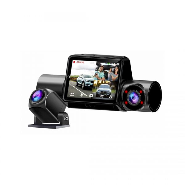 Filmadora Kojima F6, graba simultáneamente el frente, la parte trasera y el interior del vehículo, brindando seguridad y respaldo en cada viaje. Su pantalla táctil y conexión con app facilitan la visualización y gestión de las grabaciones de manera sencilla.
