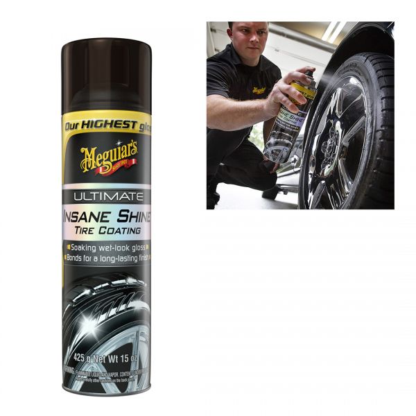 Meguiar's insane shine es un protector de neumáticos, plásticos y gomas en aerosol altamente eficaz y sobretodo muy cómodo de usar.