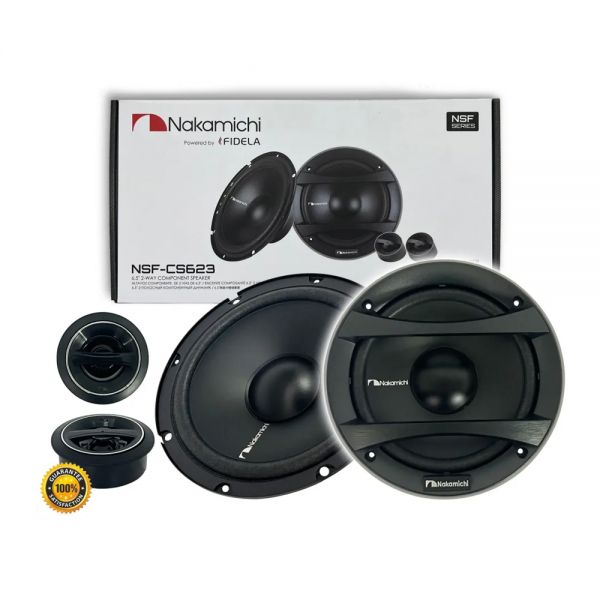 Sistema de altavoces componentes de 2 vías y 6.5 pulgadas (16.5 cm) diseñados para ofrecer un sonido limpio y equilibrado en el vehículo, pertenecientes a la serie NSF de la marca japonesa.