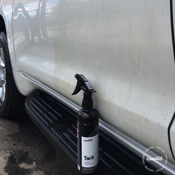 CARPRO TarX es un alquitrán, adhesivo y eliminador de insectos de concentración profesional, así como un desengrasante que obtiene su fuerza de los disolventes extraídos de las cáscaras de naranja.