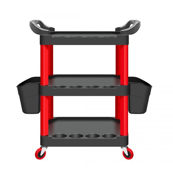 Los carritos de detailing STD DETAIL PRO funcionan como bancos de trabajo móviles con múltiples compartimientos y amplio espacio de almacenamiento. Fabricados en PVC resistente y duradero, ofrecen una estructura estable y fácil de trasladar, ideal para talleres y trabajos de detailing profesional.
