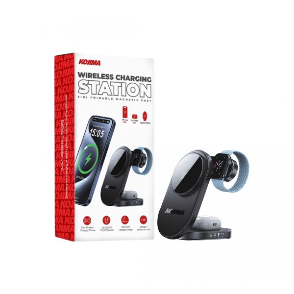 El Cargador y soporte 3 en 1 combina elegancia y funcionalidad, ideal para oficina o casa. Incluye cargador MagSafe y base para Apple Watch y AirPods, ofreciendo carga rápida y segura para tus dispositivos Apple en un solo lugar.