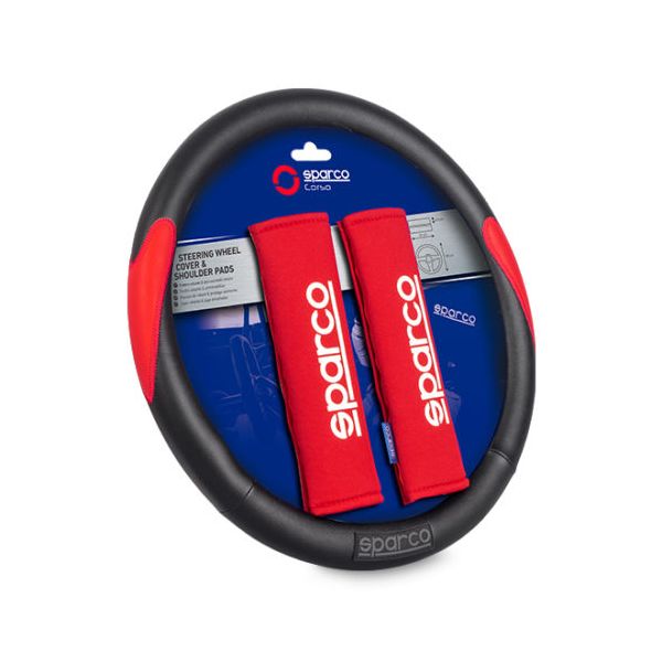 SPARCO CUBRE VOLANTE + CINTURON SPC1116KRD ROJO