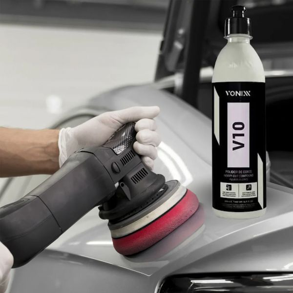 V10 tiene una fórmula exclusiva para pinturas de barniz suave (normalmente traen este tipo de barnices los vehículos procedentes de asia, Brasil, Argentina, etc.). Fue desarrollado especialmente para la etapa de corte, pule para eliminar por completo los rayones del papel de lija de grano P1.200 a P1500, elimina los rayones profundos y la oxidación en la pintura descuidada.